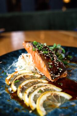 At Otsu, inspiration is taken from Japanese techniques like tataki, aburi, tare reductions, and miso curing then paired with Mediterranean notes such as chimichurri, paprika hummus, basil, pistachio, dates, citrus, and spice.
